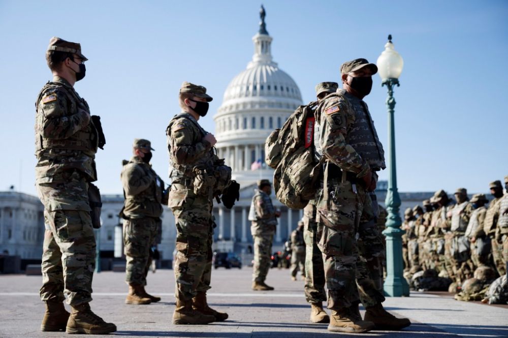 这是2021年1月14日在美国首都华盛顿特区的国会区域拍摄的美国国民警卫队士兵。新华社发(沈霆摄)